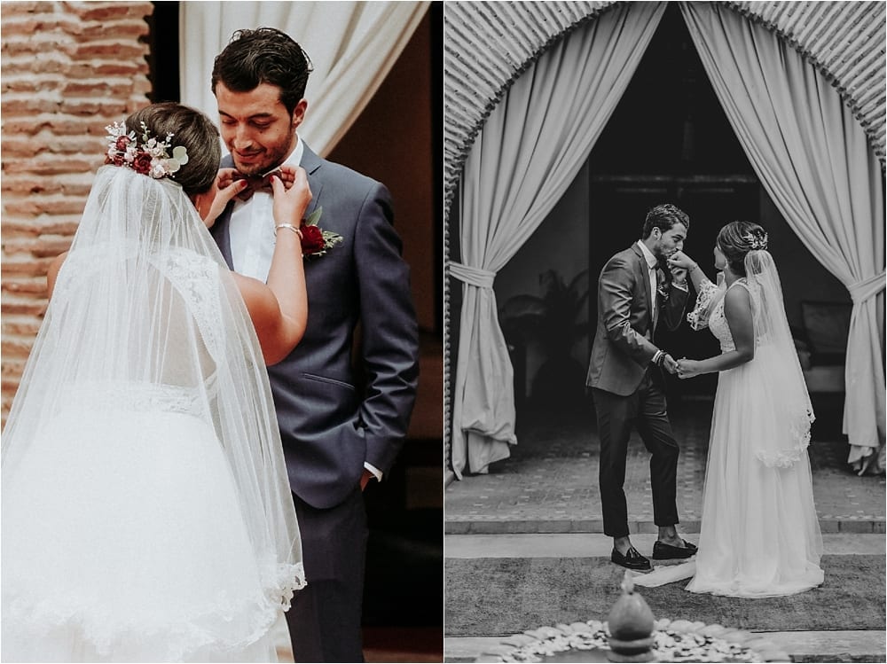 I can’t say enough great things about this wedding! Amina and Matteo were such a joy to work with. They were so sweet and kind to each other and everyone they were in contact with. I loved working with these two .They were married at the Riad Jawad Venu in Marrakech and chose to do a first look. Amina and Matteo had an incredibly sweet ceremony and I was able with team, to document their best day!